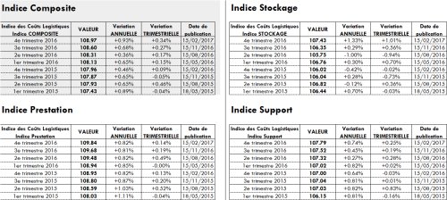 Il est structuré autour d’un indice composite de variation de l’ensemble des coûts des prestations logistiques, lui-même calculé à partir de trois sous-indices :