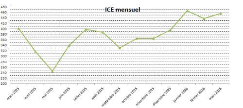 L'ICE représente la moyenne trimestrielle des ICE mensuels du trimestre précédent.